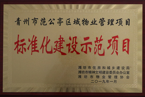 2019年1月青州市范公亭區(qū)域物業(yè)管理項目被評為“標準化建設示范項目”。