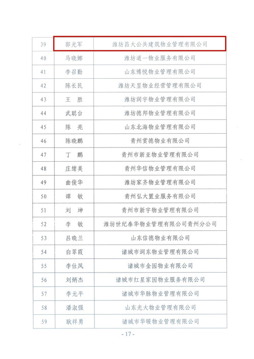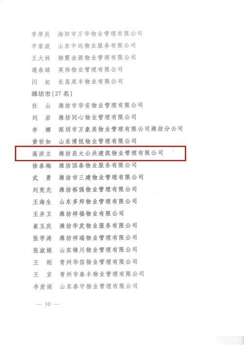 總經(jīng)理郇慶國(guó)兼濰坊市物業(yè)協(xié)會(huì)會(huì)長(zhǎng)榮獲“全省物業(yè)服務(wù)行業(yè)文明創(chuàng)建優(yōu)秀個(gè)人”榮譽(yù)稱號(hào);