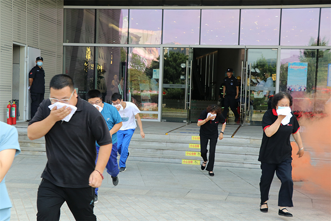 “濰坊市文化藝術中心消防演習現(xiàn)在開始!”,通訊聯(lián)絡組、后勤保障組、人員搶救組、滅火行動組、疏散引導組立即就位,煙霧升起、消防警報聲響起,演練人員用濕毛巾捂住口鼻、彎下身體,按照疏散路線快速、有序地疏散到了空曠區(qū)域,隨后,滅火行動組對火源進行滅火,被困人員模擬救出,整個演習用時15分鐘,演練活動緊張有序。