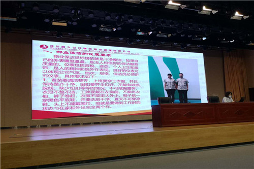 此次培訓(xùn)由品質(zhì)監(jiān)察部及峽山片區(qū)負責(zé)人、全體保潔員參加。